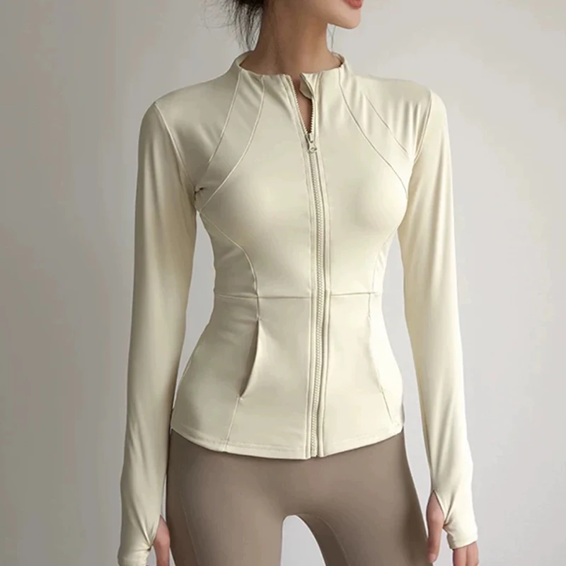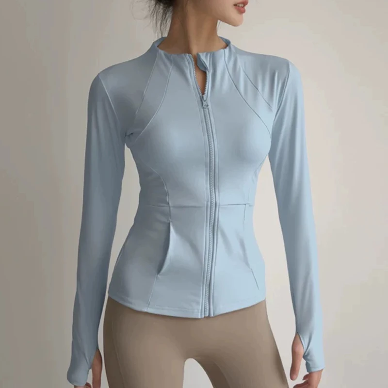 Perfeita para treinos ou para o dia a dia, essa jaqueta combina design moderno com funcionalidade. A gola alta com linha de proteção valoriza a cintura e protege o pescoço, enquanto o ajuste fino garante um caimento impecável.